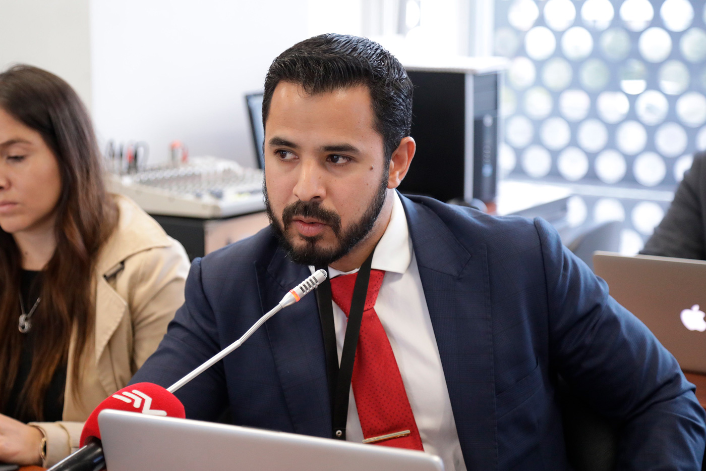 Andrés Alprecht, exsubsecretario de Planificación y Economía del Ministerio de Defensa, aceptó una entrevista con esta alianza periodística tras la investigación titulada ‘Un exsubsecretario de Defensa tuvo vínculos con socios de exportadoras opacas de oro’. En la foto, Alprecht compareció en la Comisión de Régimen Económico de la Asamblea, en lugar del ministro Loffredo, el 1 de marzo de 2024. Foto: Asamblea Nacional del Ecuador