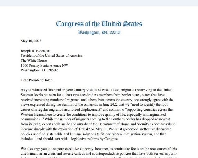 Otros firmantes de la carta incluyen legisladores de estados fronterizos como la representante Nanette Barragán de California, Raúl M. Grijalva de Arizona y Greg Casar de Texas, así como miembros del ala progresista del partido, incluidas la representante Alexandria Ocasio-Cortez de Nueva York y la representante Rashida Tlaib de Michigan.